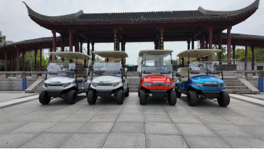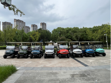 该批新车装配的是新款前后罩、后尾灯、四轮液压碟刹(制动力更强)、可调A字臂(方便调整前束)、磷酸铁锂电池、高强度铝合金车架、豪华座椅(印有客户专属LOGO)、合页折叠玻璃、铸铝踏板、整体式塑料地板胶、一键启动,车辆更加紧凑,通过性更好。球童踏板高度可调,适合不同身材的球童。对于出口车型集装箱装柜量大幅提高,节约运输成本。